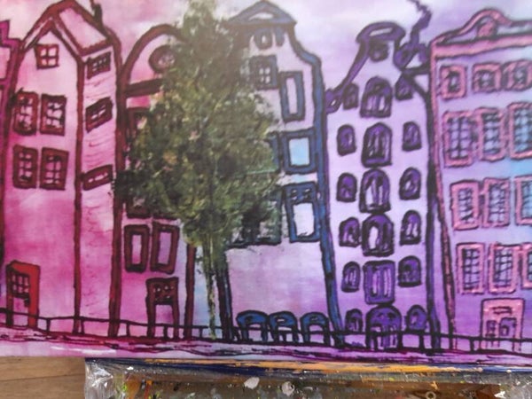 Amsterdam houses printed on canvas of a painting of Ans Duin. Lowered prices!